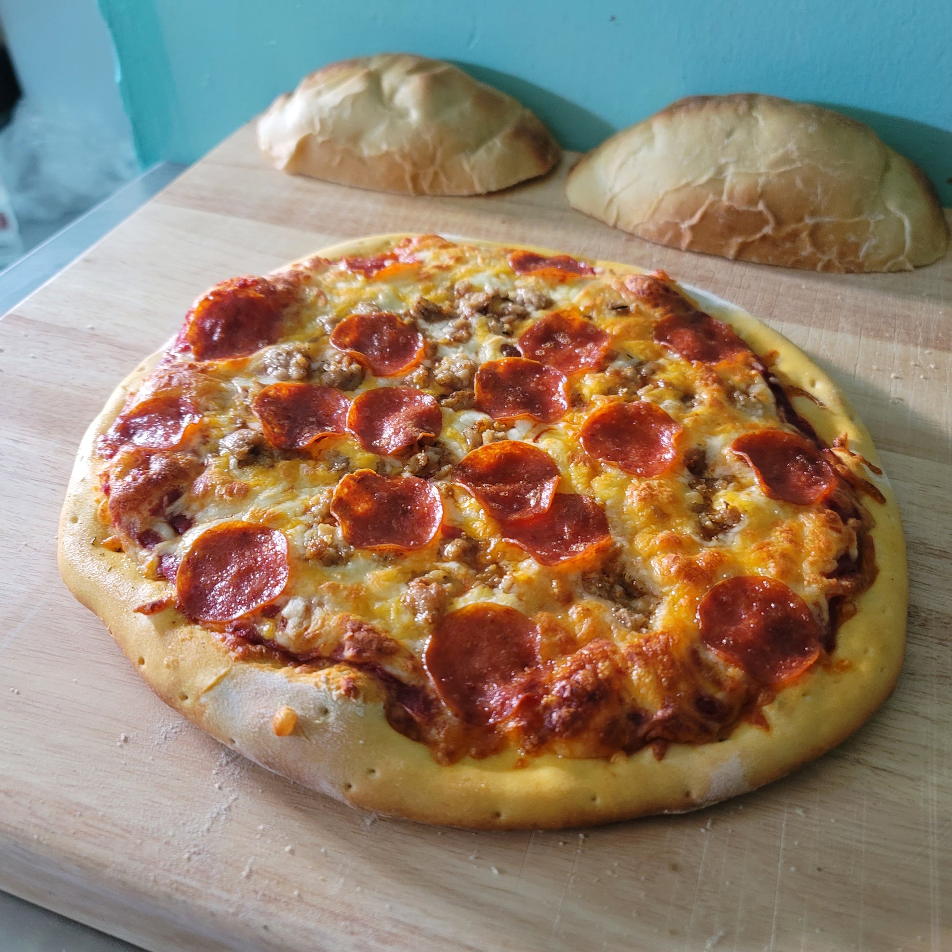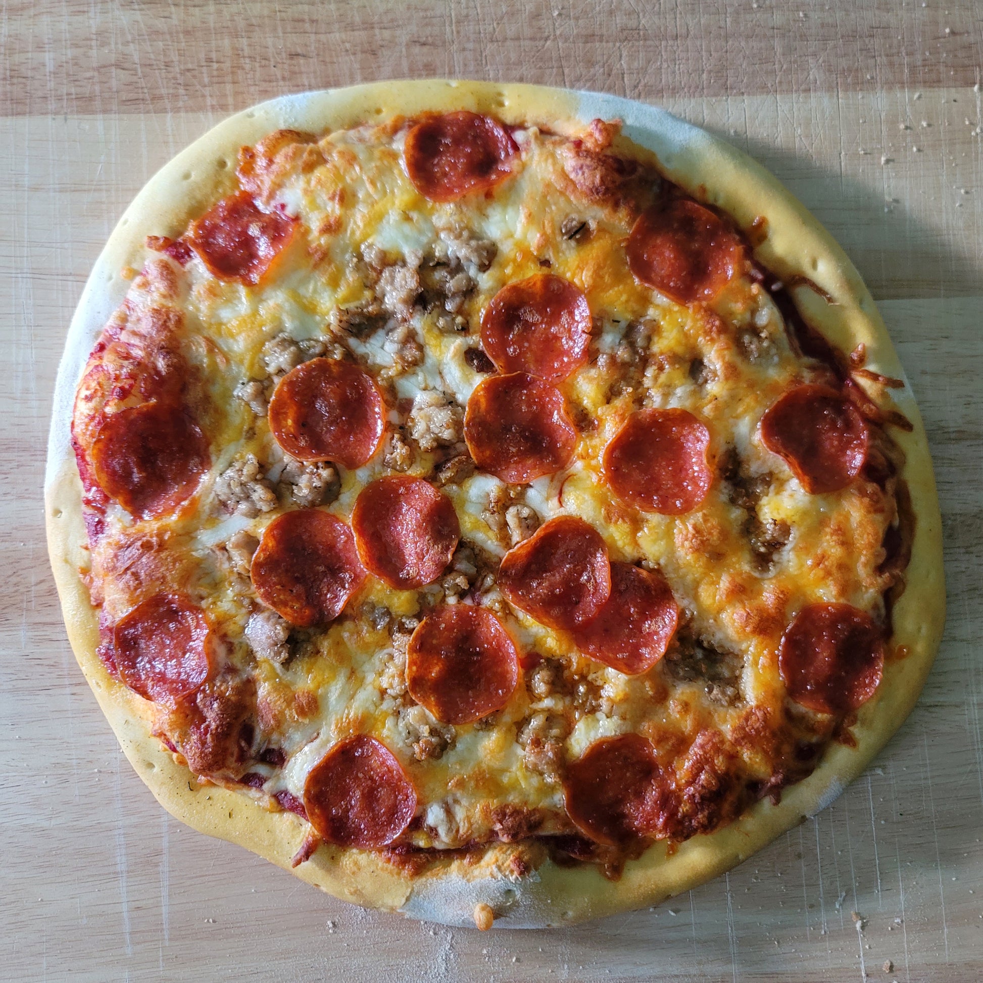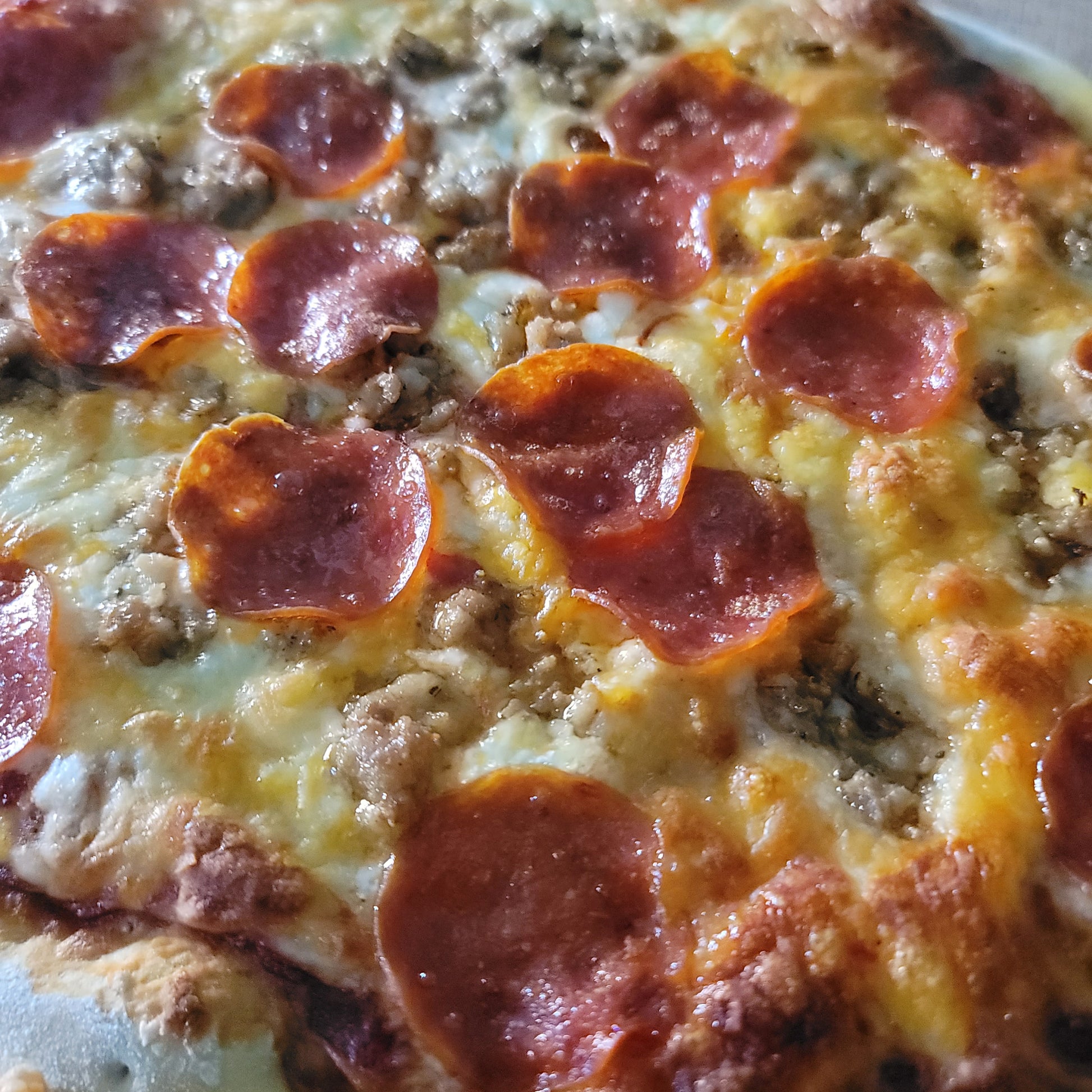 This classic pizza features our premium thin sliced pepperoni and ground pork atop our house cheese blend, garlic, salt, and pepper on your choice of sauce.